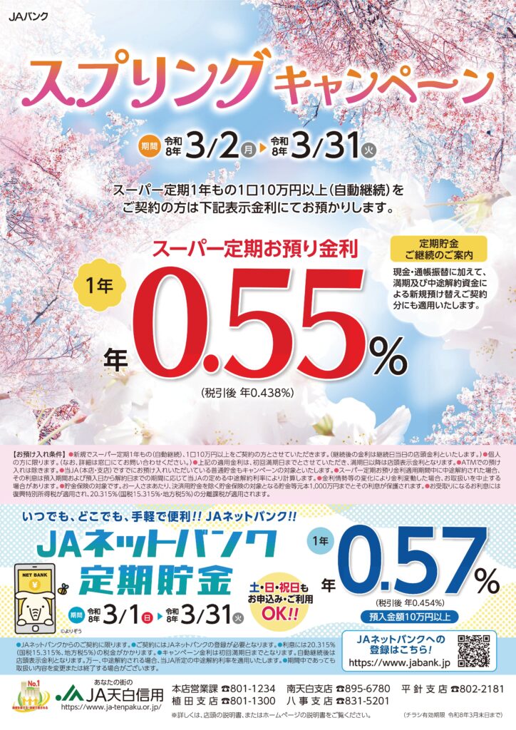 - スプリングキャンペーン(3/2~3/31)